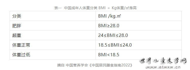 体重的评判标准有“正常”、“偏低”、“超重”、“肥胖”等。我国和世界上大多数国家把体质指数BMI(body mass index)用于判断体重最常用的指标。
